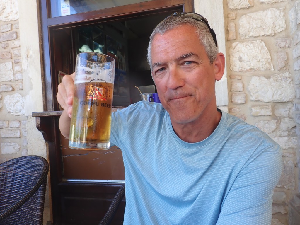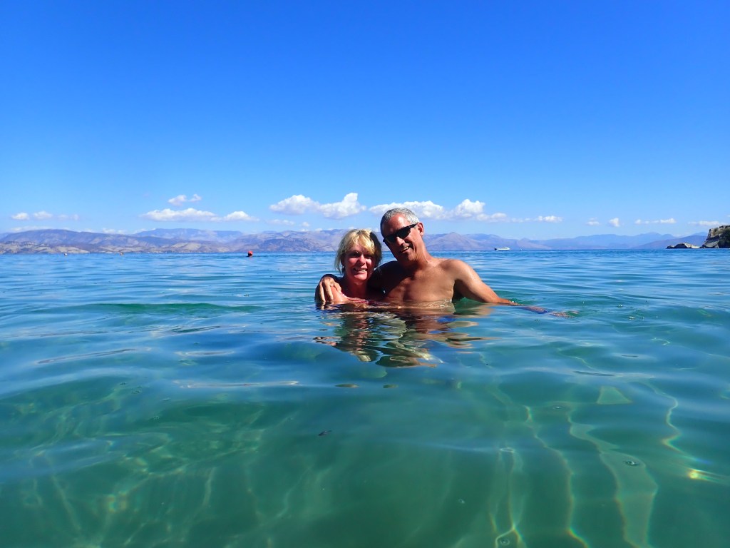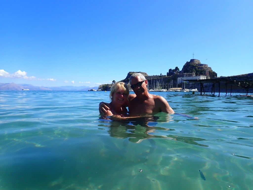 Our time in Corfu was not very long so we quickly disembarked the ship, caught the local bus into the Old Town and found a beach to relax on. The beach was part of a small restaurant and we were fortunate enough to get some nice lounge chairs by the water. Drinks ordered, we changed into our swim suits and had a nice dip in the sea.