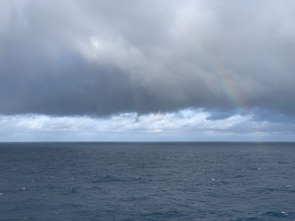 The air is starting to get a little warmer now. This morning, when we got up, it was quite overcast but shining through the clouds was a beautiful rainbow.