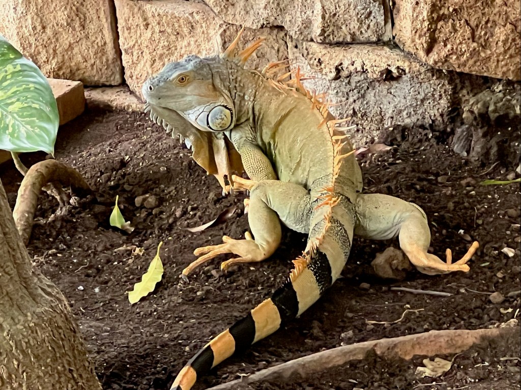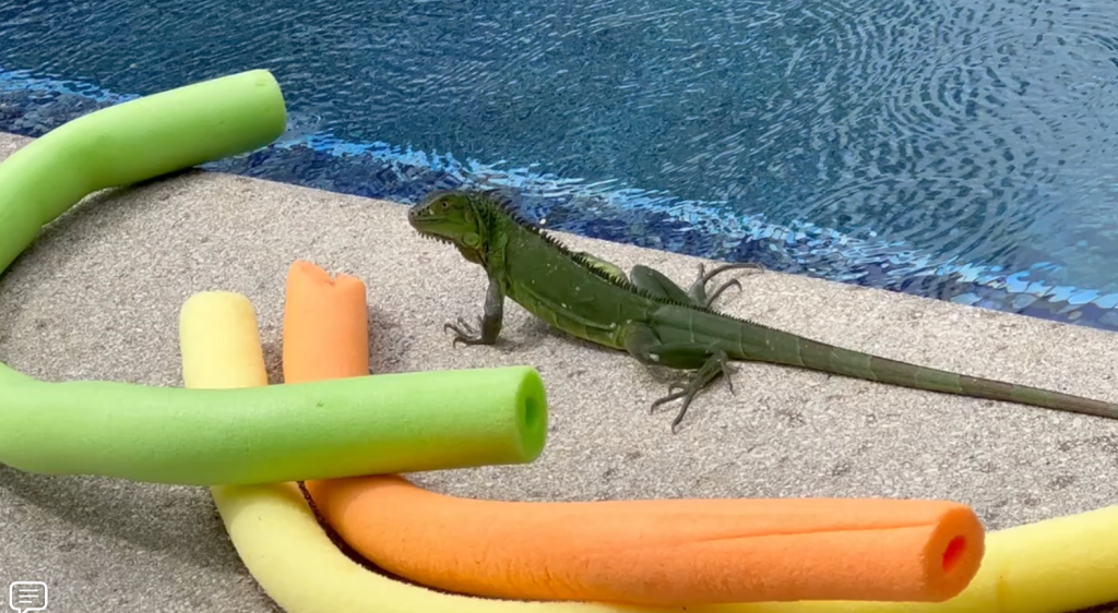This afternoon we were entertained by “King Tut”, the big green iguana, as he moved from his normal perch to the palm tree beside the balcony. He is no silent traveller, we heard him crash through the fronds and soon after a loud thump on the pool deck and we then saw a little green iguana go running. With the little iguana removed from the tree the King returned to his perch high in the tree overlooking the pool area.