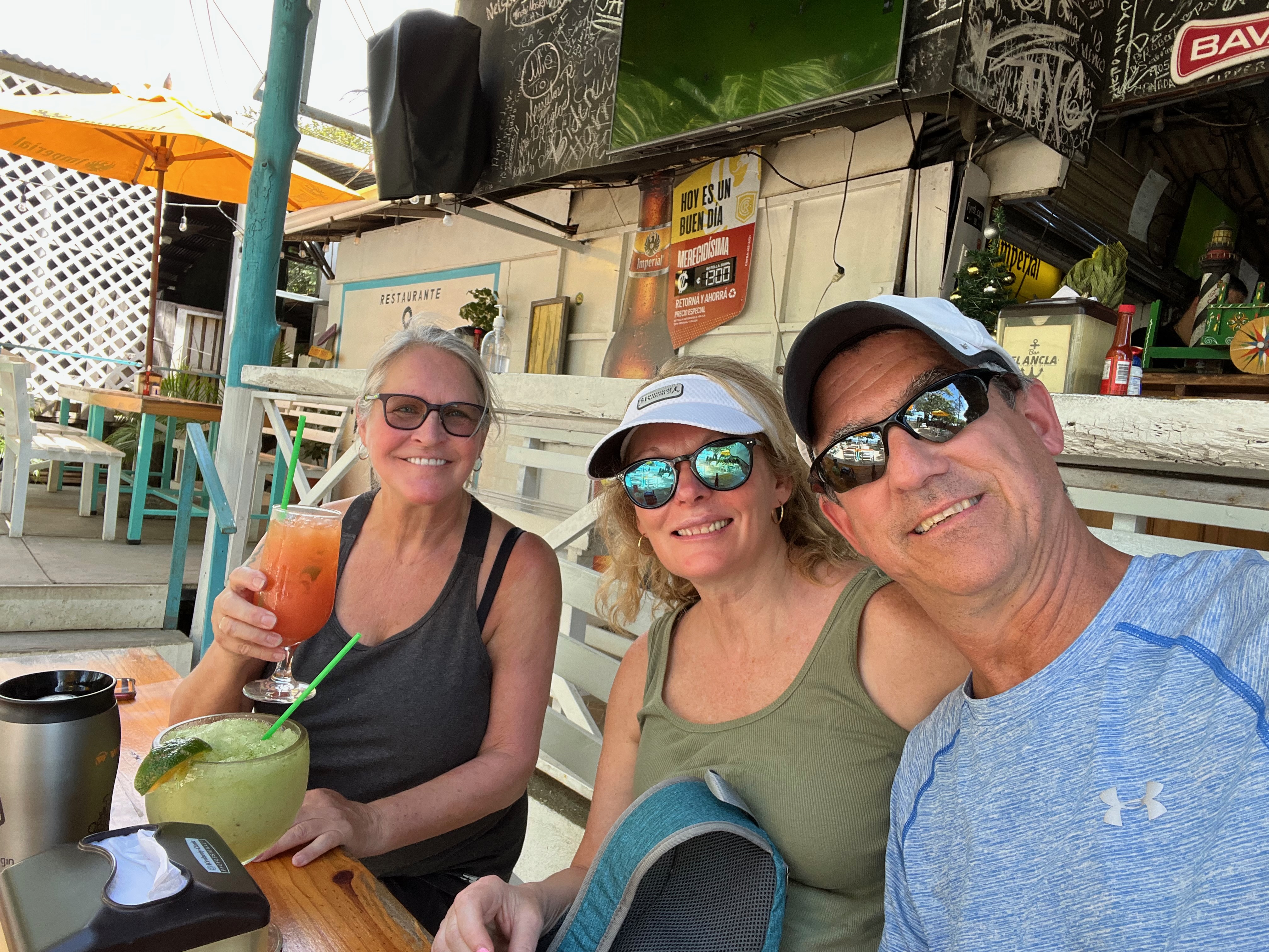 The village had a beautiful boardwalk along the beach and lots of little shops and restaurants. We ate our lunch at a little cafe on the beach, feasted on shrimp and Tico tacos and chicken wings. The limonade with mint was delicious.