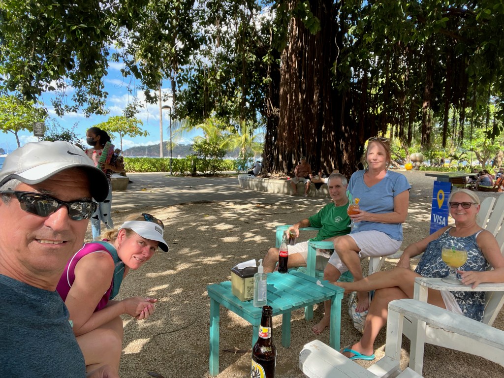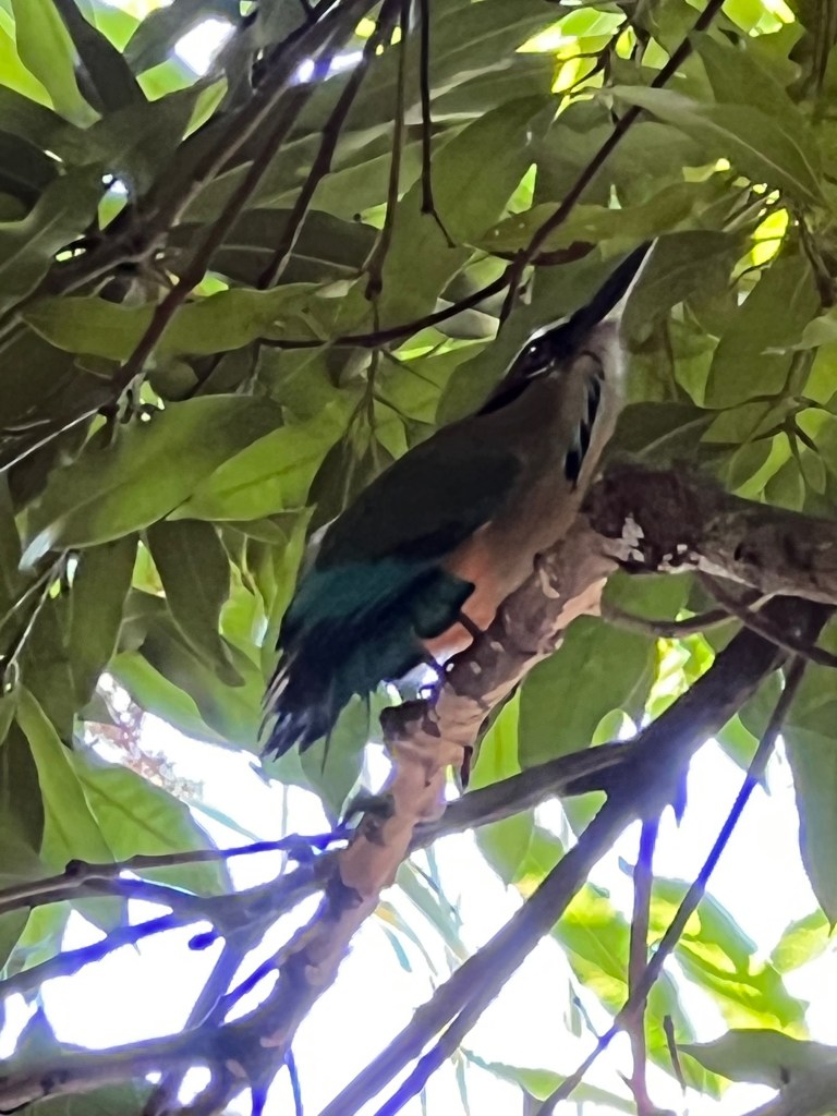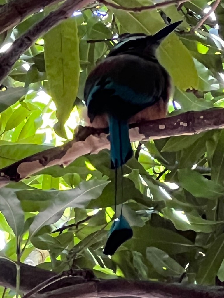Brian and I walked to the grocery store early this morning for a few items. It was quite a nice walk and not too far. When we returned we had a nice swim and lounged by the pool for awhile. Today we spotted a Turquoise Browed Motmot. It was a beautiful bird well hidden in a tree close to our balcony. Today, though I was not able to get any photos we saw a Baltimore Oriole and more parquets. As expected there was more iguana drama today. A smaller male entered King Tut’s terrority trying to court one of the females and was quickly set straight by the King.