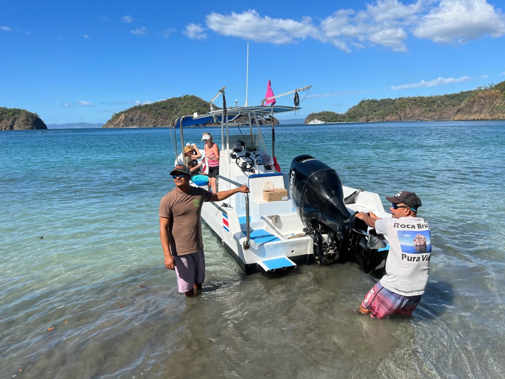 We caught our boat off the Playa Hermosa Beach. It was obvious that Carlos, the captain of the boat and Moika, the tour guide, had done this many times before as they backed the boat in to the beach maneuvering the waves as they crashed on the shore.