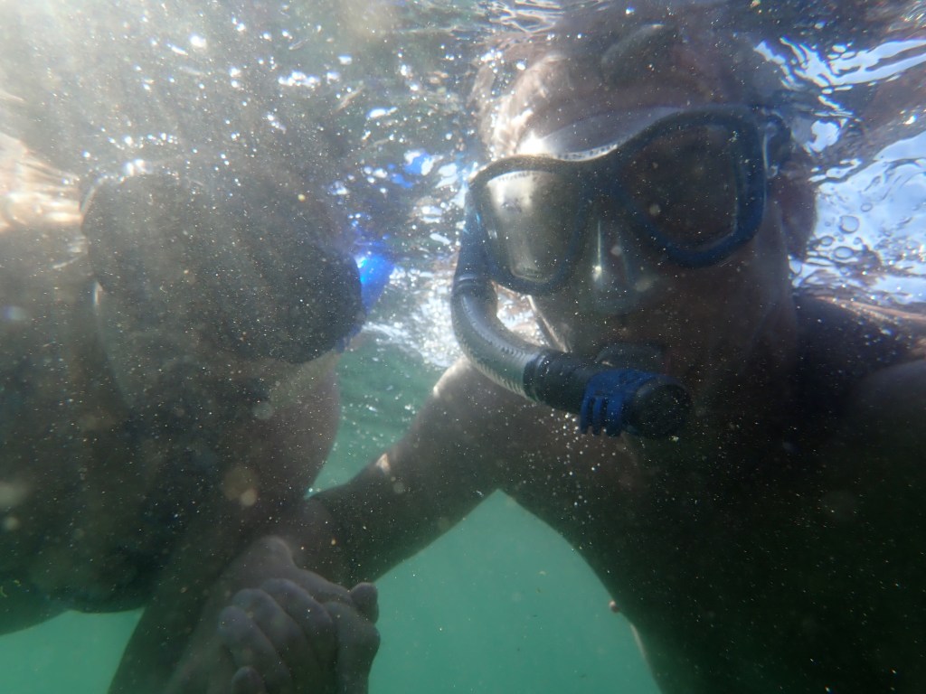 Next stop snorkelling. Though the visibility was not good due to the high tide and the wind, Carlos was able to find some starfish for us to hold and a few parrot and angel fish swimming in the rocks. Also, we all got to experience the sting of the microscopic jelly fish 😦