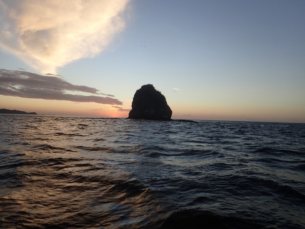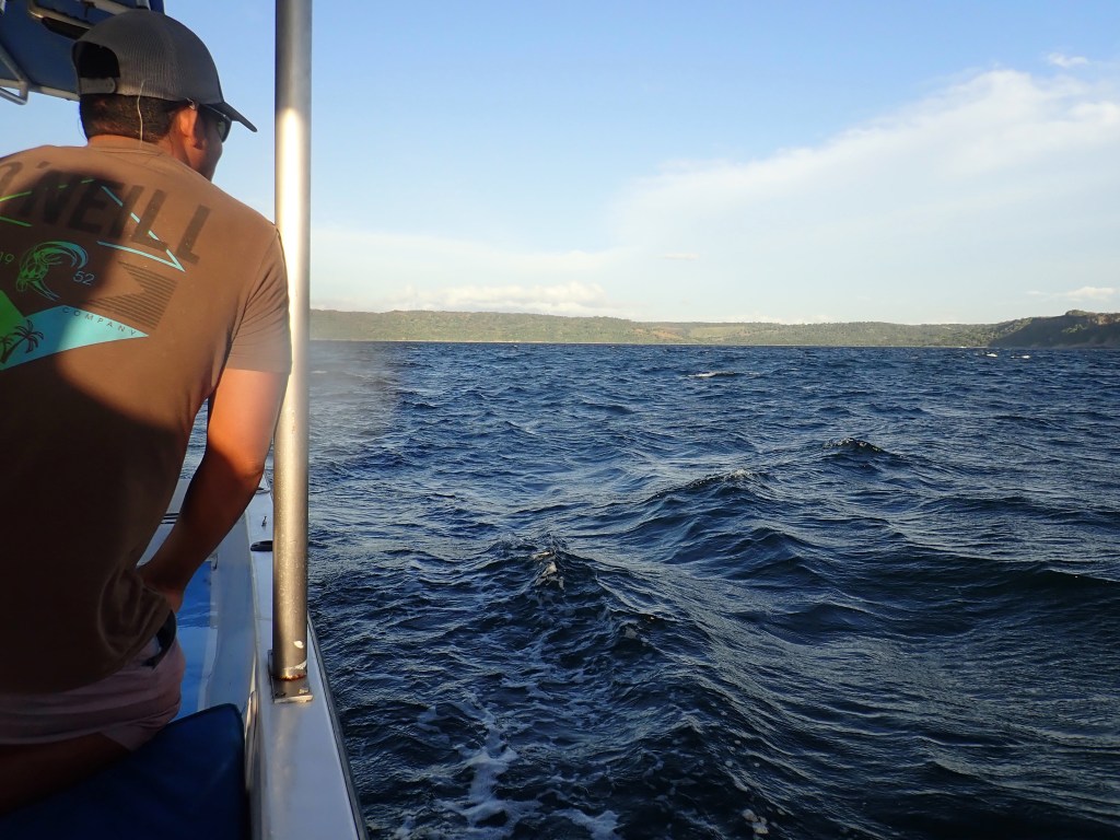 With bellies full we set off to find some dolphins. We followed the coast along the Gulf of Papagayo and then headed out to sea. Soon after heading out to sea, Moika spotted a dolphin following us. He followed us for quite awhile jumping out of the water and swimming so close to the boat that we could see him underwater.