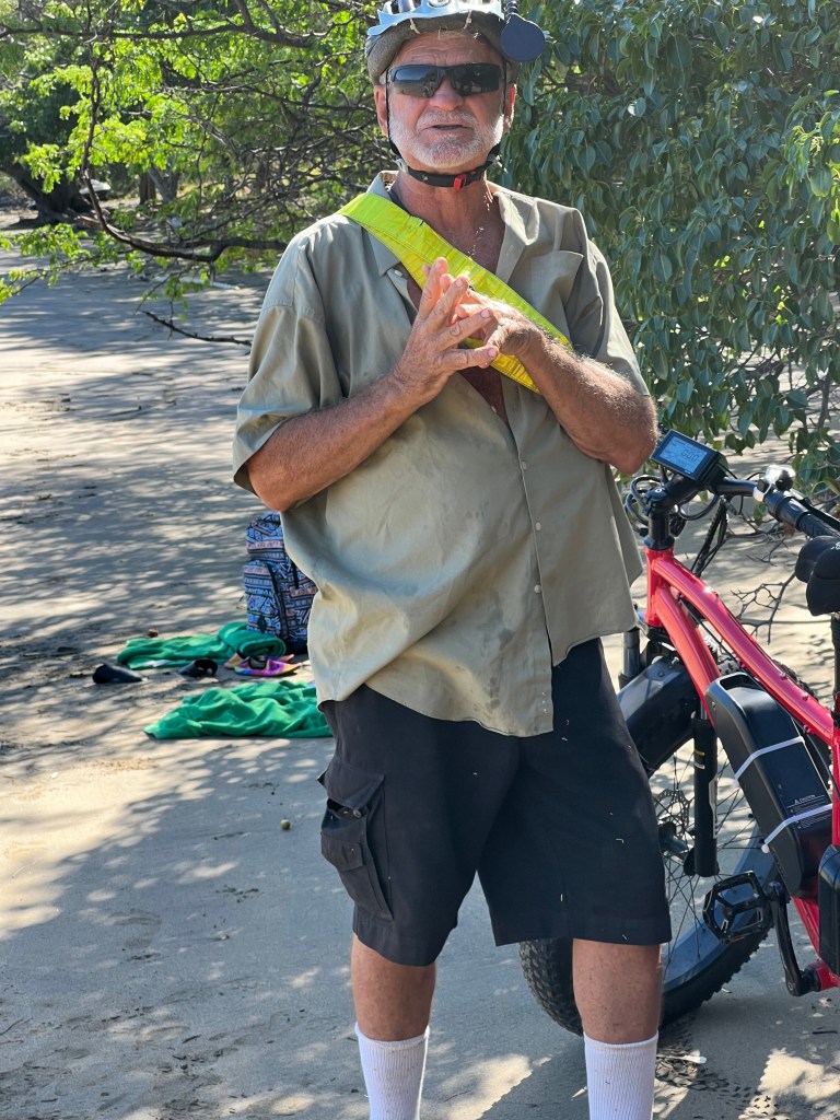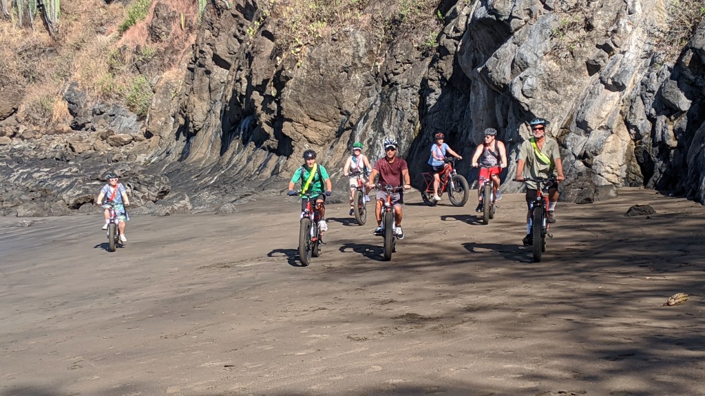 Dillion and Robert were our guides. After some instruction on how to use the e-bikes we were off. We took the back dirt roads to the beach and then drove up and down it a few times getting used to the bikes. From there we crossed the small estuary and started our drive to Playa Ocotal.