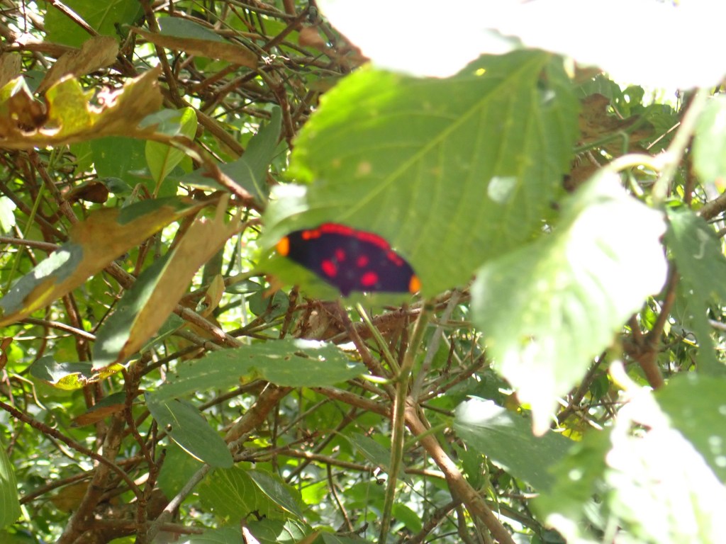 To access the waterfalls we had to register at Hacienda Guachipelin as it is on their property. The trail to the waterfall was nicely maintained, was mostly flat and bordered by a lush tropical forest that was littered with small purple, yellow and orange flowers and fluttering butterflies. As we approached the waterfalls we had to descend hanging stairs.
