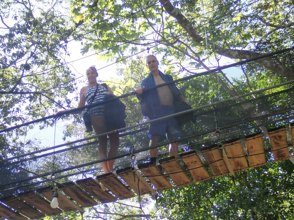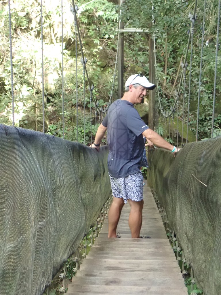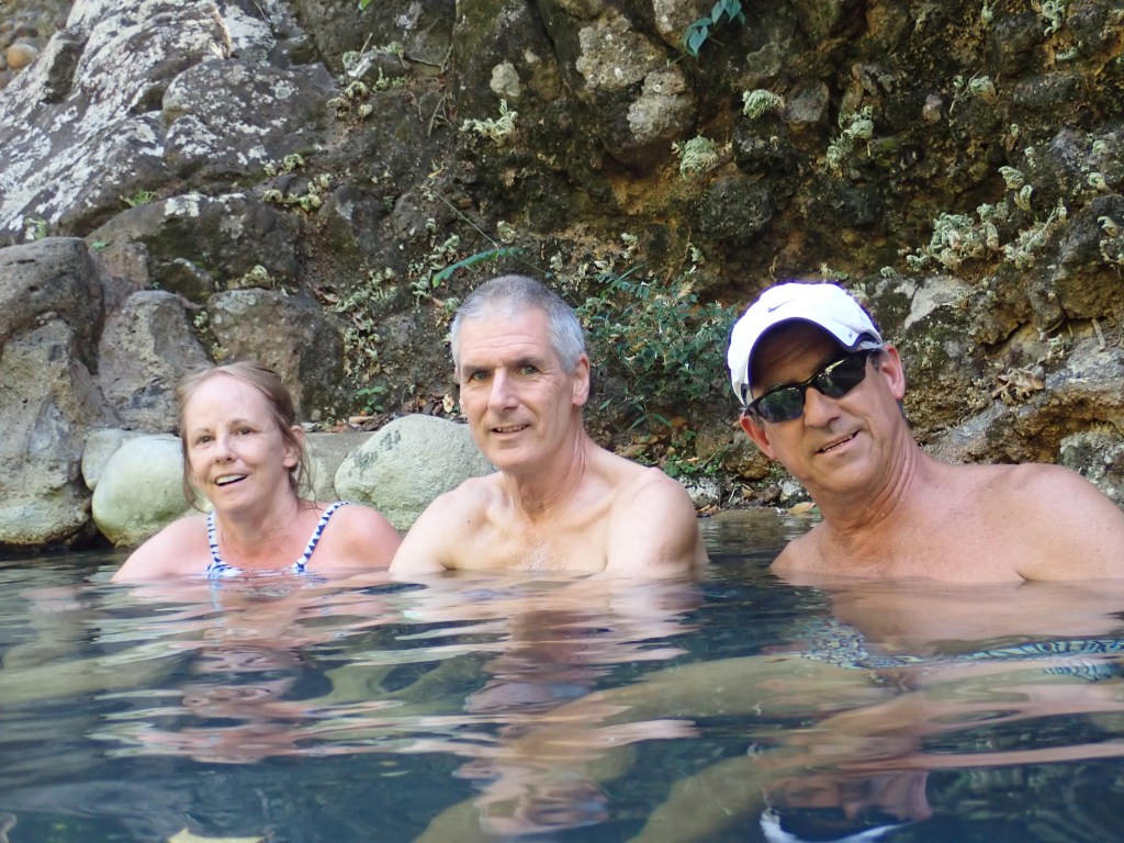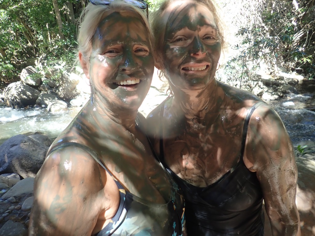 From the waterfall we made our way to the Rio Negro Hot Springs. To reach the springs we had to a cross hanging bridge. There were 10 hot springs, ranging in temperatures from 98F – 106F, that we could move between. Kia and I tried the mud bath and then rinsed in the river that flowed along the springs.