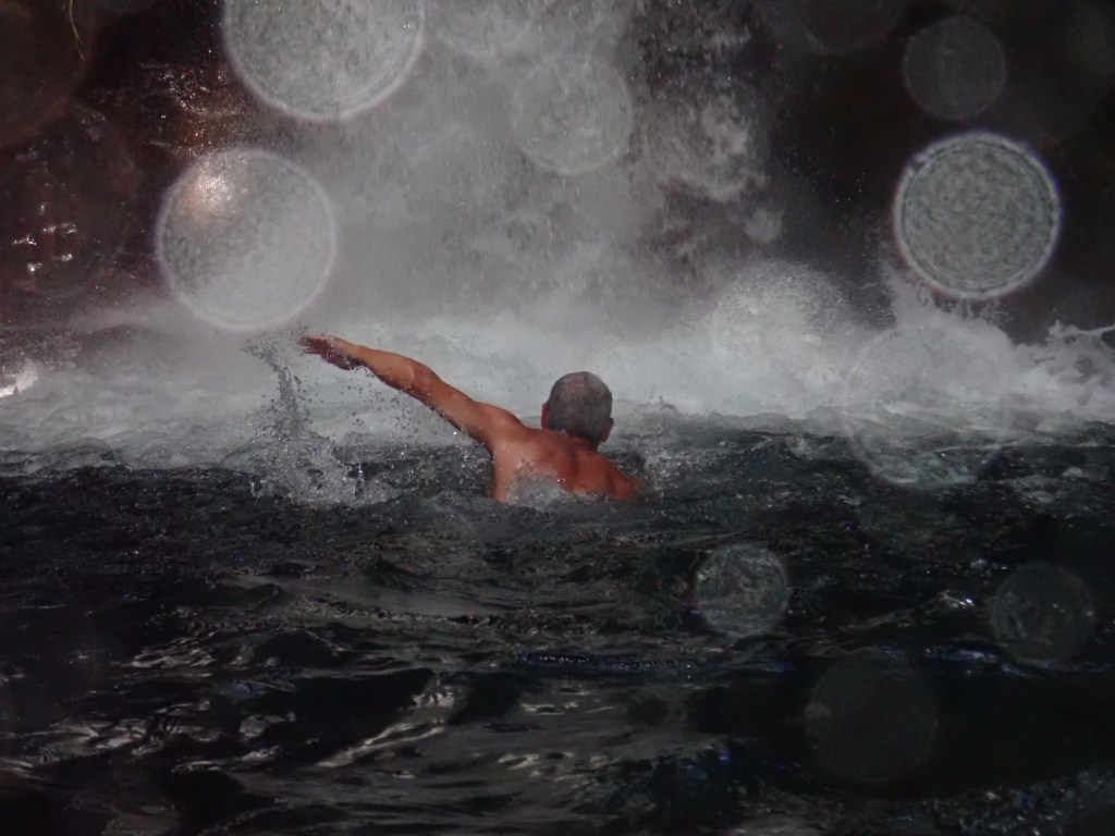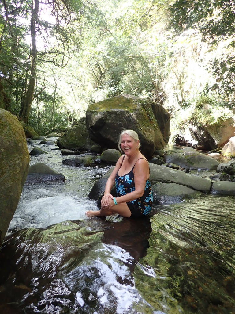 The waterfall was beautiful and the turquoise pool was ice cold. Gary was the first in, followed by the rest of us. We stayed and played in the pool for a short while.