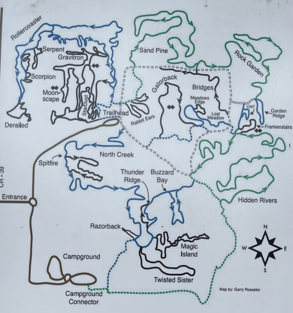 Today we went to Alafia River State Park for our bike ride. Like several of the bike parks near Tampa, this park was once a phosphate mine named the Lonesome Mine. In 1996 the land was donated to the state to be used as a park. Alafia State Park is now home to 17 miles of bike trails ranging from easy to extremely difficult.