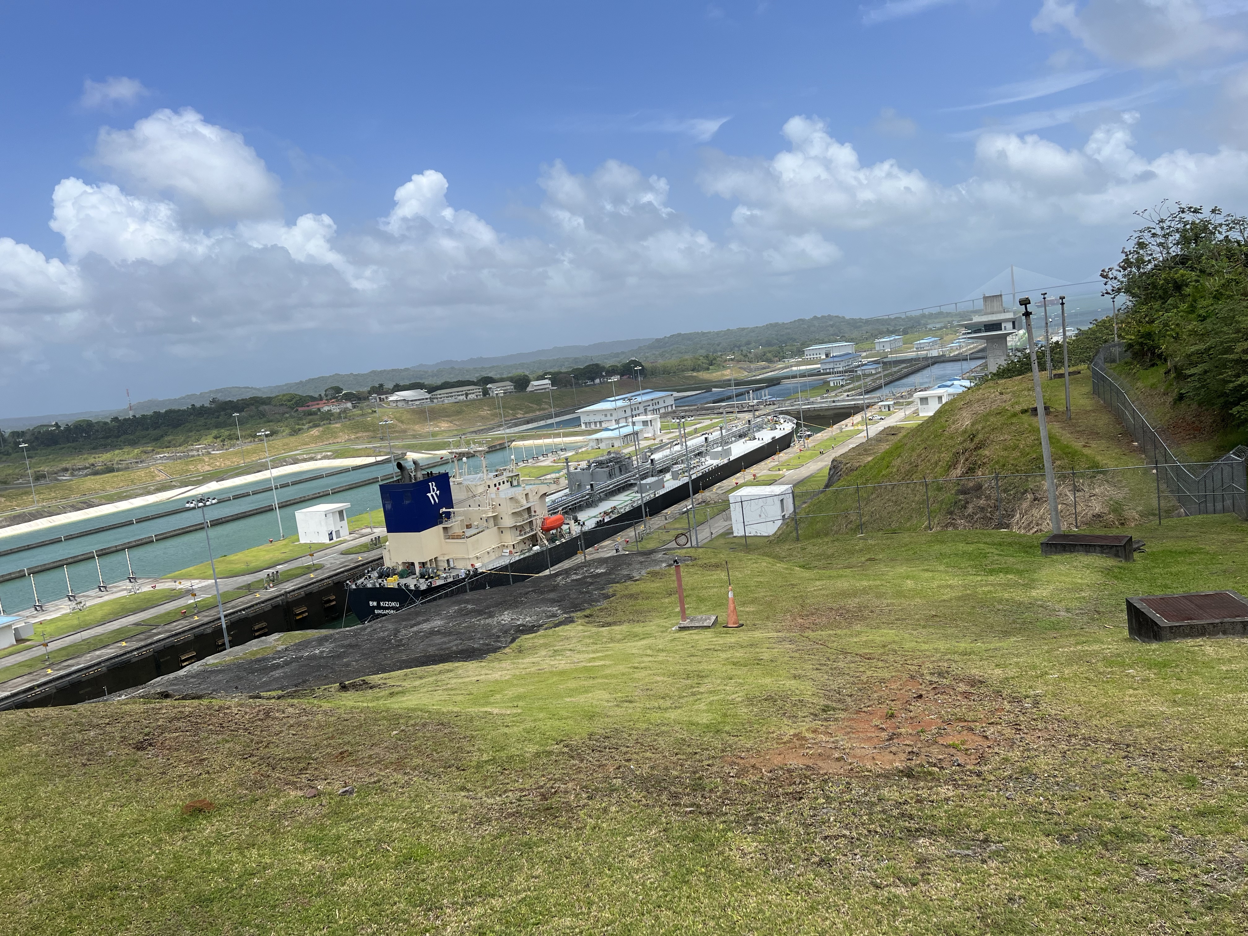 From here we crossed the Atlantic bridge to give us an Atlantic Ocean vantage of the old and new locks.