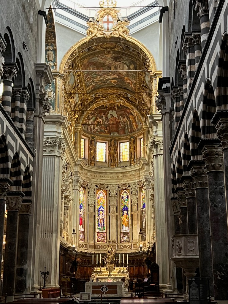 In Genoa there are many beautiful cathedrals. The main one being the Genoa Cathedral (Italian: Duomo di Genova, Cattedrale di San Lorenzo) – a Roman Catholic Church dedicated to Saint Lawrence (San Lorenzo) and the seat of the Archbishop of Genoa. The cathedral was consecrated by Pope Gelasius II in 1118 and was built between the twelfth and fourteenth century. Later in the sixteen century the bell tower and dome were added. The architecture is both romanesque and gothic in style.