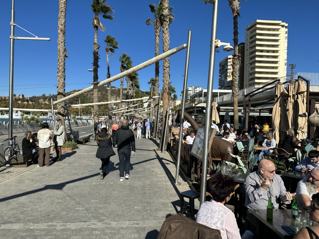 Malaga has a beautiful harbour front and a marble boardwalk that follows the coast. The boardwalk seemed to go on forever. We walked close to 8km and still could not see the end of it.