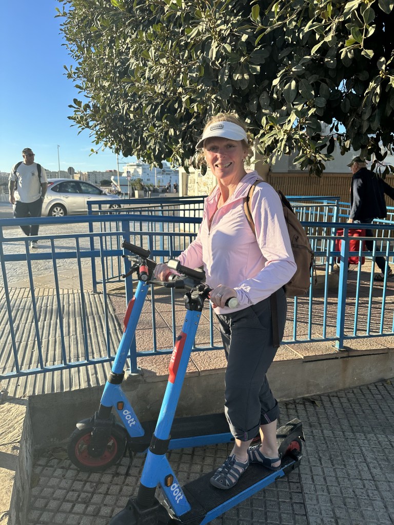 For our trip back to the ship we decided to hop on some electric scooters. We started the share program, picked out scooters and headed back along the boardwalk in the bike lane. It was definitely a faster way to get back.