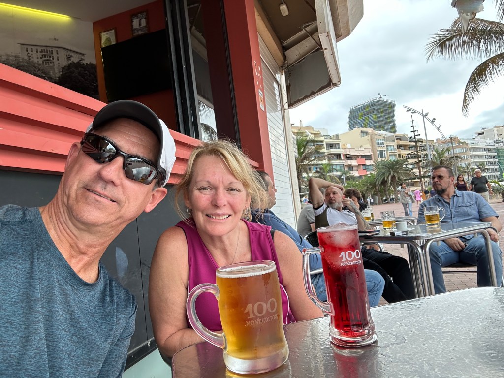 We strolled through the narrow streets to Playa de Las Canteras where we layer our towels out and soaked in the sun and sand. After a short nap on the beach we packed up and followed the marbled boardwalk along the shoreline, stopping for a local beer and sangria.