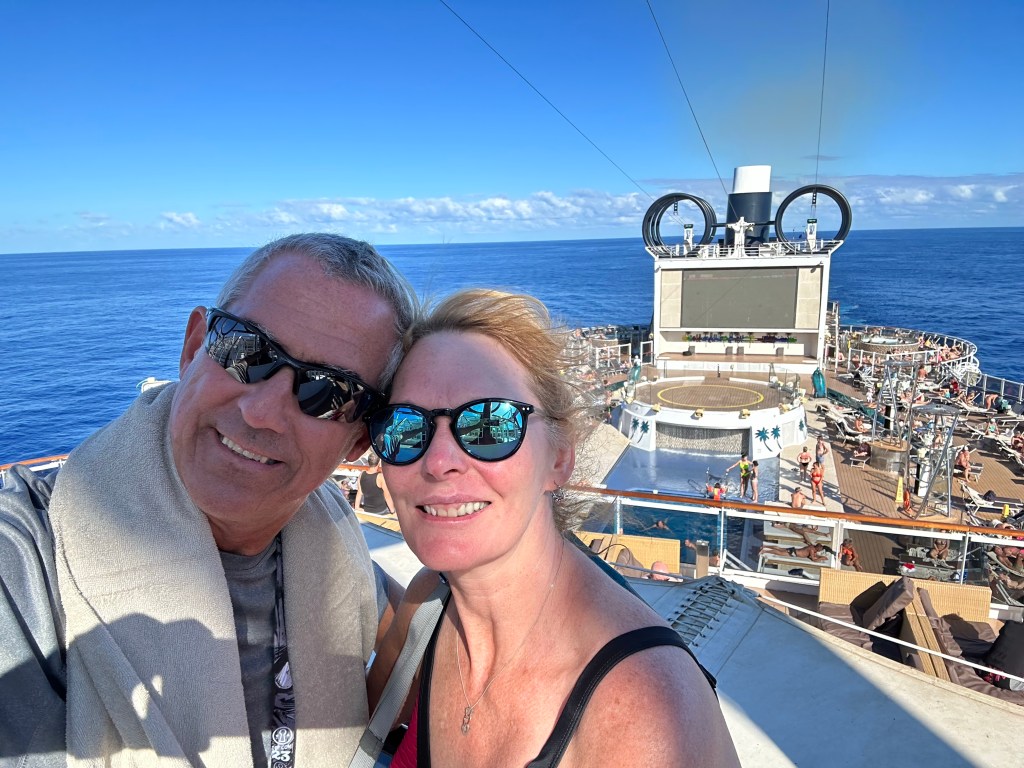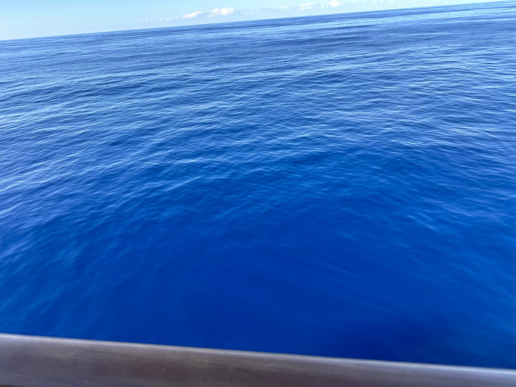 On the first morning and each day after, we have awoken to beautiful blue skies and calm waters. We have slept like babies with the gentle roll of the waves. For 5 days we have seen only blue waters and a horizon in the far distance but we know we are getting closer to land 😀