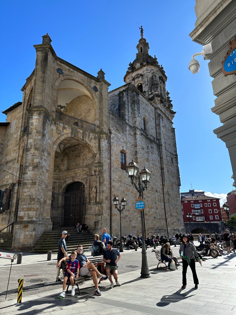 Again we followed the river for a short distance to the Casco Viejo (Old City). Casco Viejo forms the medieval old quarter, a lively riverside district with modern shops and traditional taverns lining the Seven Streets. We walked by La Ribera market – one of the largest indoor markets in Spain and gazed at the Santiago Cathedral, a 14th-century landmark with a dramatic Gothic spire. From here we walked to the Arriaga square to see the beautiful Teatro Arriaga which was inspired by the Paris Opera House and then made out way back to the metro to return to Getxo for some exploring.