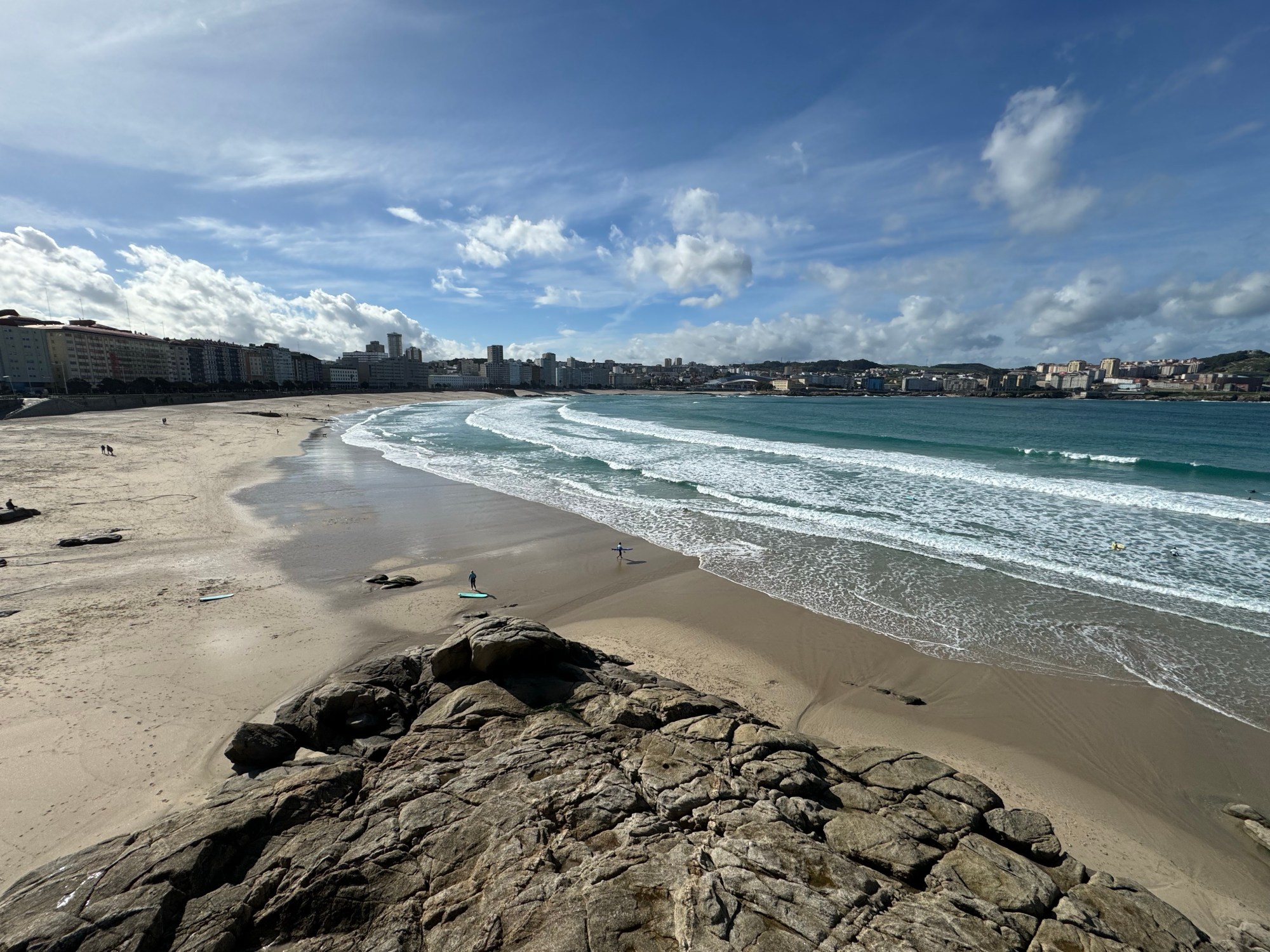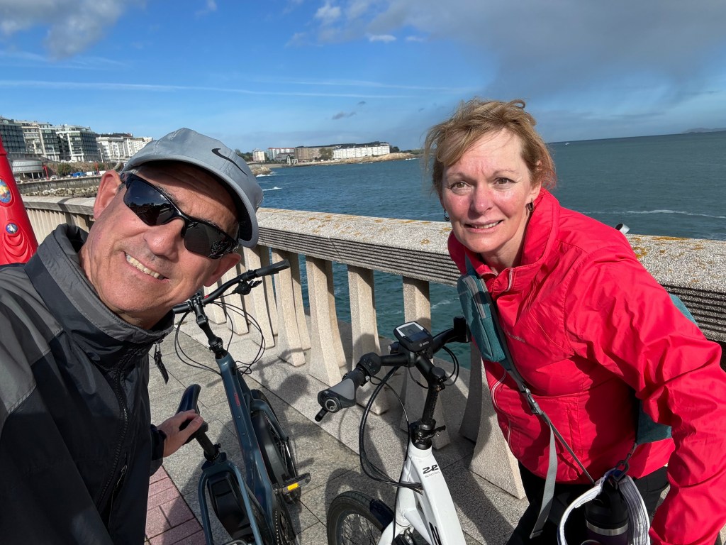 From here we followed the bike path past La Coruña’s city beach, which is a beautiful 1.4km-long protected sweep of sand with decent surfing waves named Playa del Orzán at its east end and Playa de Riazor at the west, all the way to Monte Saint Pedro stopping several places along the way to admire the scenery.