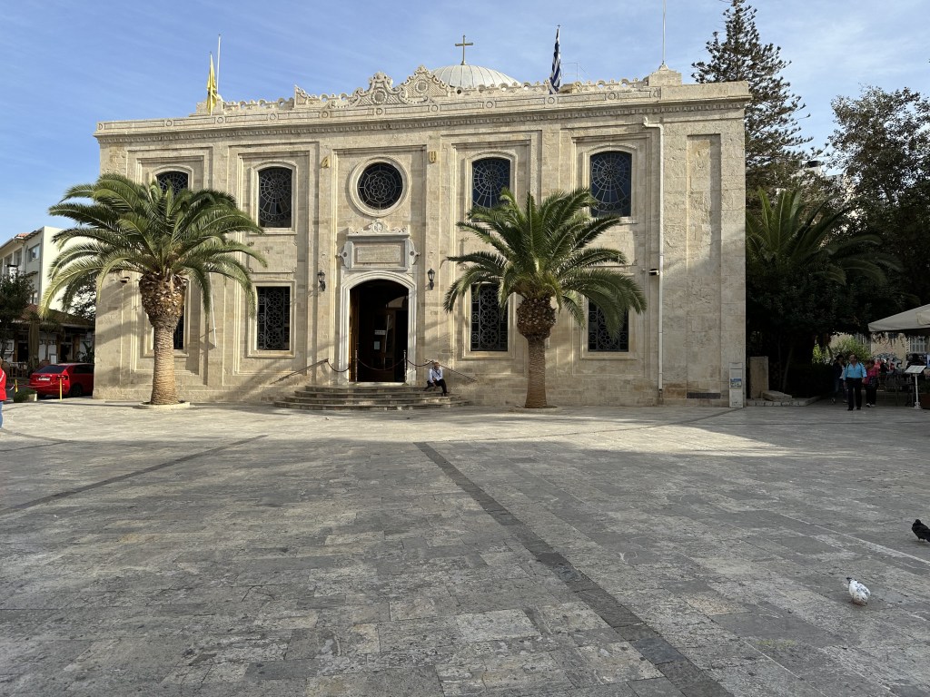 Continuing down the main pedestrian walkway we came to the church of Agios Titos. This majestic church dominates its palm-studded square it resides in. It was originally built by the Byzantines in 961AD and has been reconstructed several times over the years, with the same architecture, after being destroyed by earthquakes and fires. It has also served many different denominations – converted to a Catholic church by the Venetians, turned into a mosque by the Ottomans and finally in 1925 to an Orthodox church.