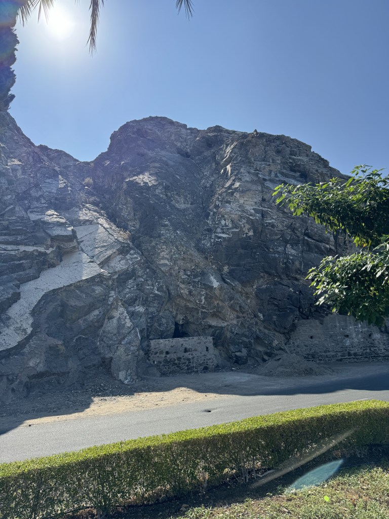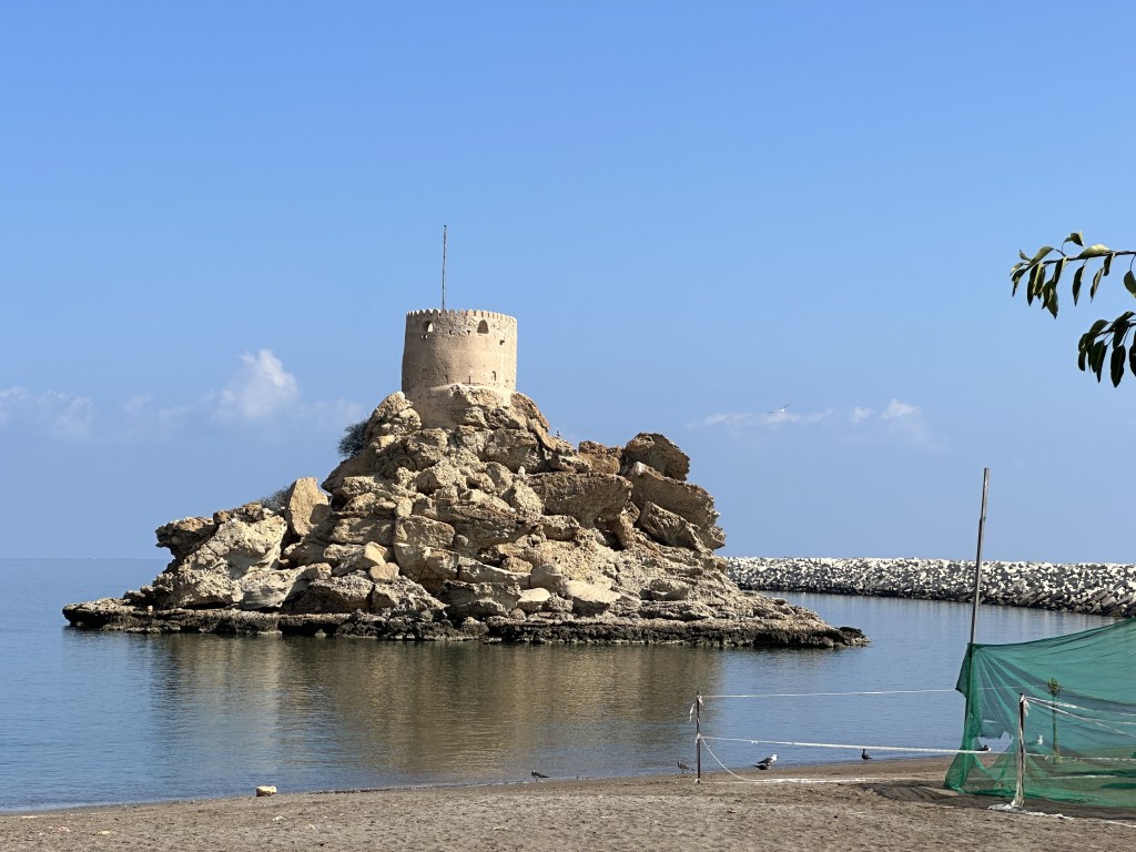 For the second day we booked an excursion that took us on a road that carved through the Al Hagar mountains out to the coast where we stopped at Quriyat, a small fishing village. Quriyat is situated between the Gulf of Oman and the eastern Al Hajar mountains. Here we visited As’ Sirah Fort Park where there was a historical Portuguese watchtower and a beautiful stretch of beach.