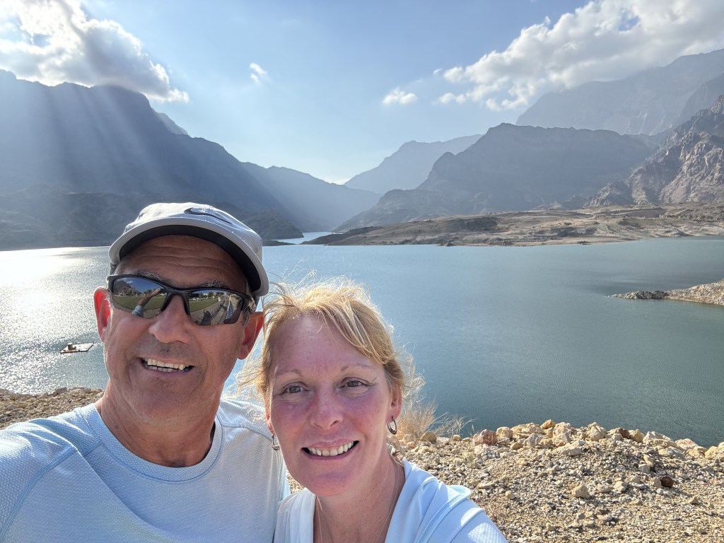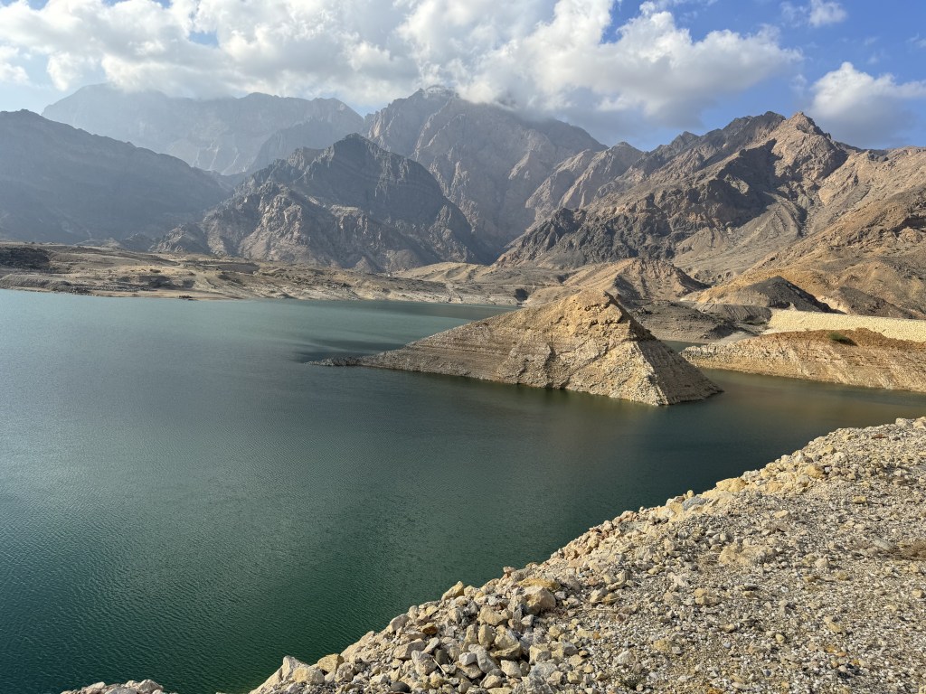 A quick drive from here took us to a small waterfall for a photo stop and then on to the Wadi Dayqah Dam. This is the largest dam in the Arabian Peninsula. Dayqah Damm was built in 2012 to collect the rain falling from the high peaks and to control the water flowing through to the villages below. The result is a stunning fresh water lake and river which extends 7 km from the main body of the dam. The panoramic view of the mountains reflected in the plate-glass-like water is a rare sight in the desert. The road winding up to the reservoir has been pleasantly landscaped into a park where we stopped to have our lunch.