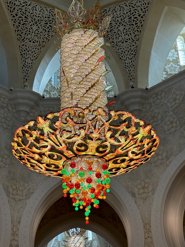 The second day was dedicated a visit to the Sheikh Zayed Grand Mosque. Reviewing the dress code and other requirements for entry into the mosque we set off to catch the local transportation that would take us there. The UAE boasts many beautiful mosques big and small but this one is the largest and grandest of them all. Constructed between 1994 and 2007 the building covers an area of more than 12 hectares (30 acres). This mosque was breath-taking with many amazing features.